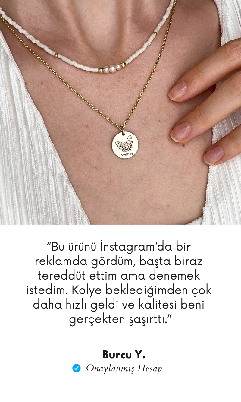Seçtiğiniz fotoğraf, kolyenin üzerine lazerle özel olarak işlenir. Patili dostunuzun bakışı, ifadesi ve sizi ona bağlayan o tanıdık detaylar özenle yansıtılır. Ortaya çıkan parça tamamen size ve en yakın arkadaşınıza özel olur.
